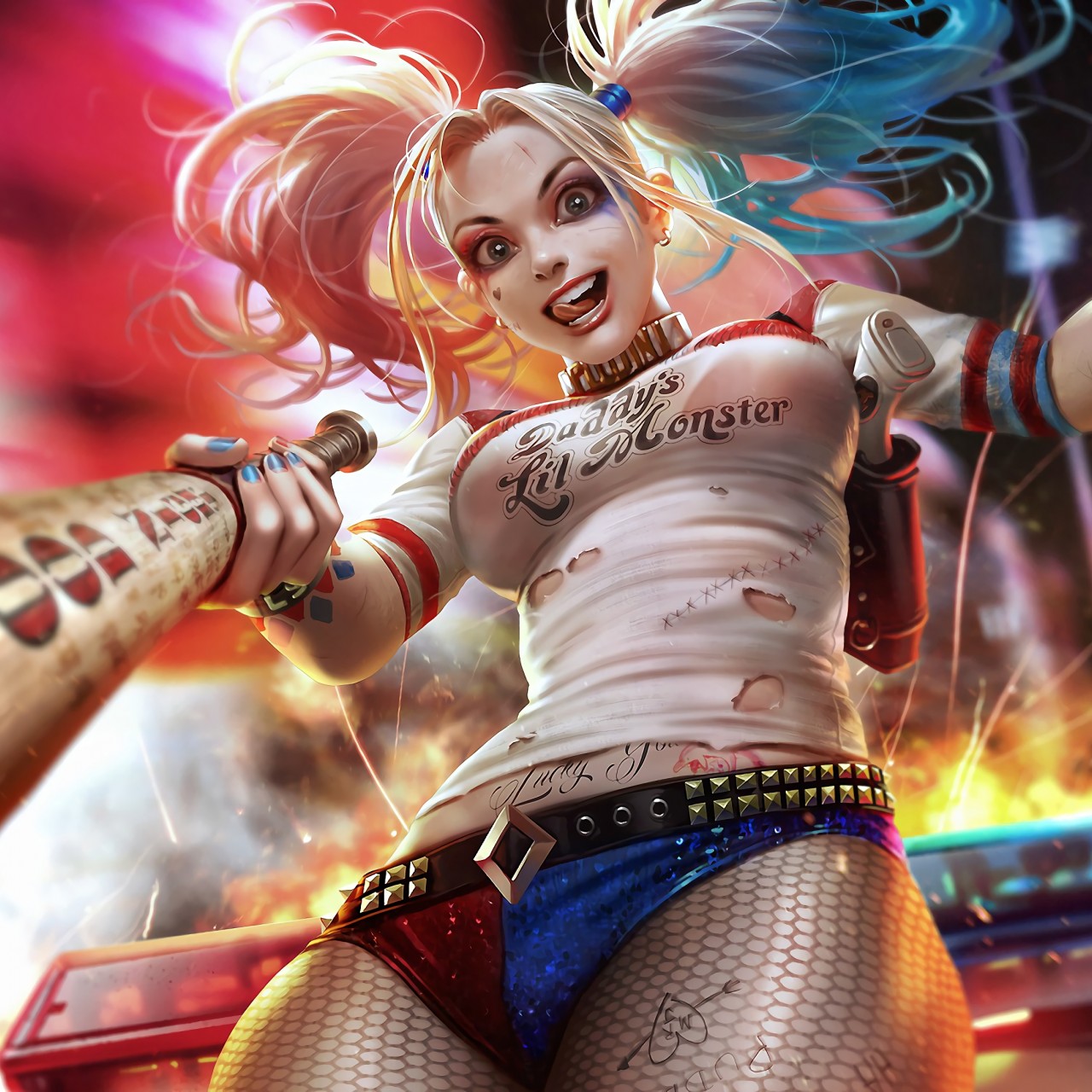 Harley Quinn Bat Digital Art Wallpaper - 1280x1280