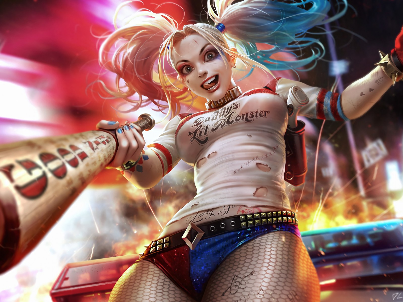 Harley Quinn Bat Digital Art Wallpaper - 1600x1200