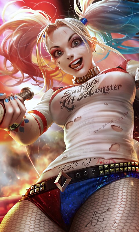 Harley Quinn Bat Digital Art Wallpaper - 480x800