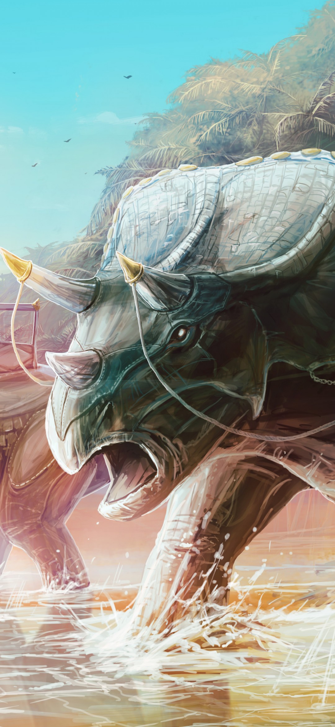 Hunting Dinosaurs Triceratops Art Wallpaper - 1080x2340
