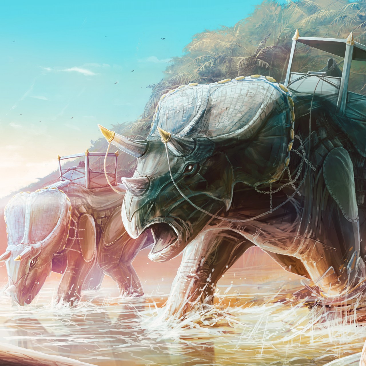 Hunting Dinosaurs Triceratops Art Wallpaper - 1280x1280
