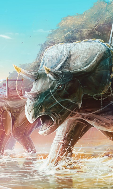 Hunting Dinosaurs Triceratops Art Wallpaper - 480x800