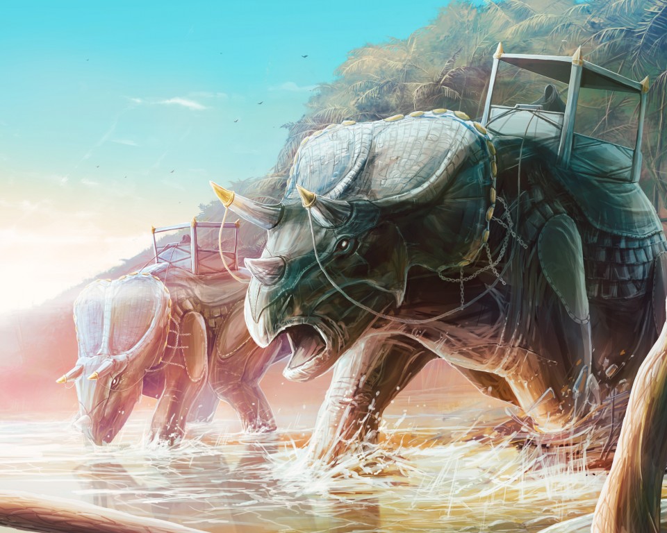 Hunting Dinosaurs Triceratops Art Wallpaper - 960x768