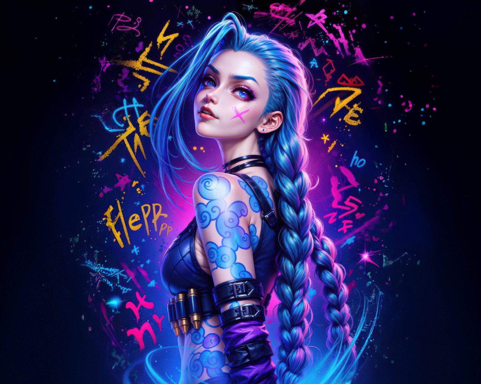Jinx Colorful Dark Neon Art Wallpaper - 1600x1280