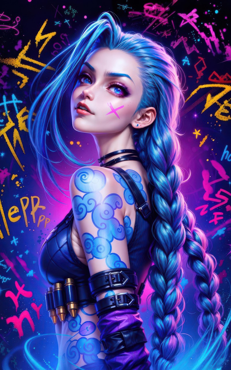 Jinx Colorful Dark Neon Art Wallpaper - 800x1280