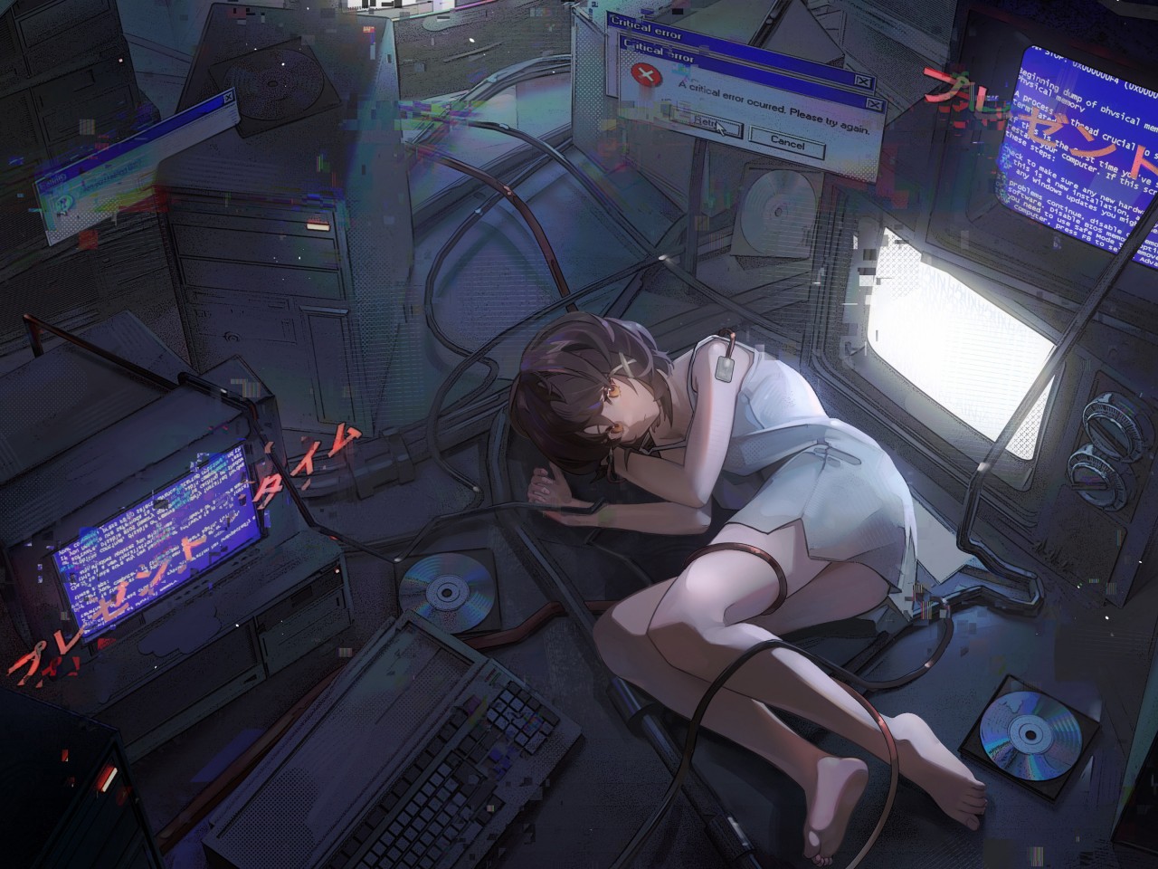 Lain Iwakura Anime Girl Computer Screens Wallpaper - 1280x960