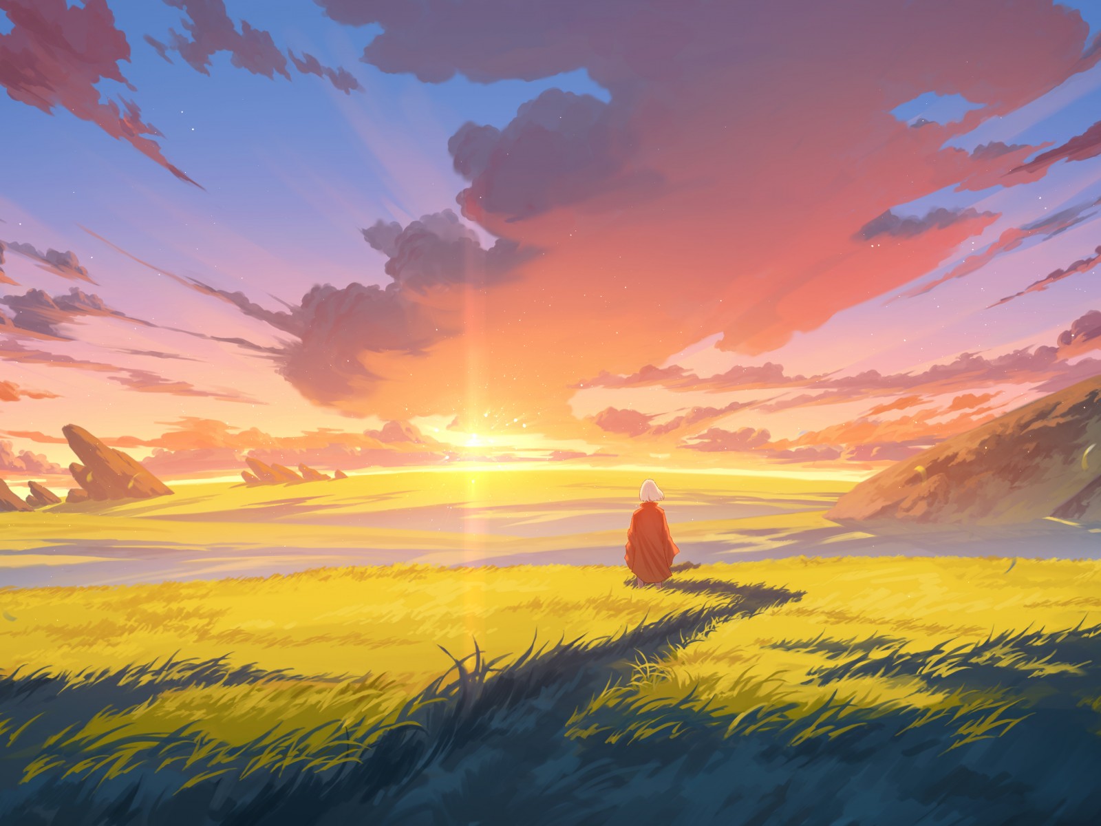 Landscape Field Sunset Sky Digital Art Wallpaper - 1600x1200