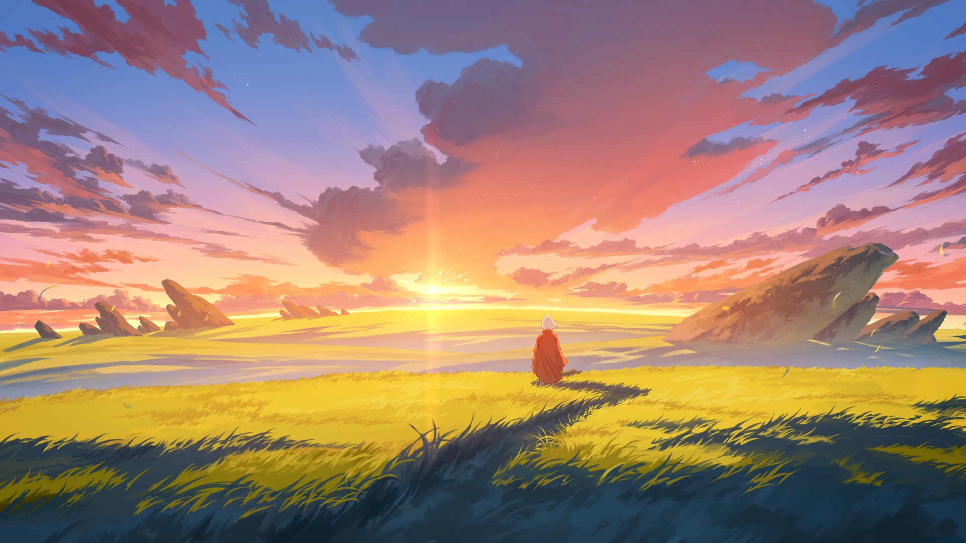Landscape Field Sunset Sky Digital Art Wallpaper - 1920x1080