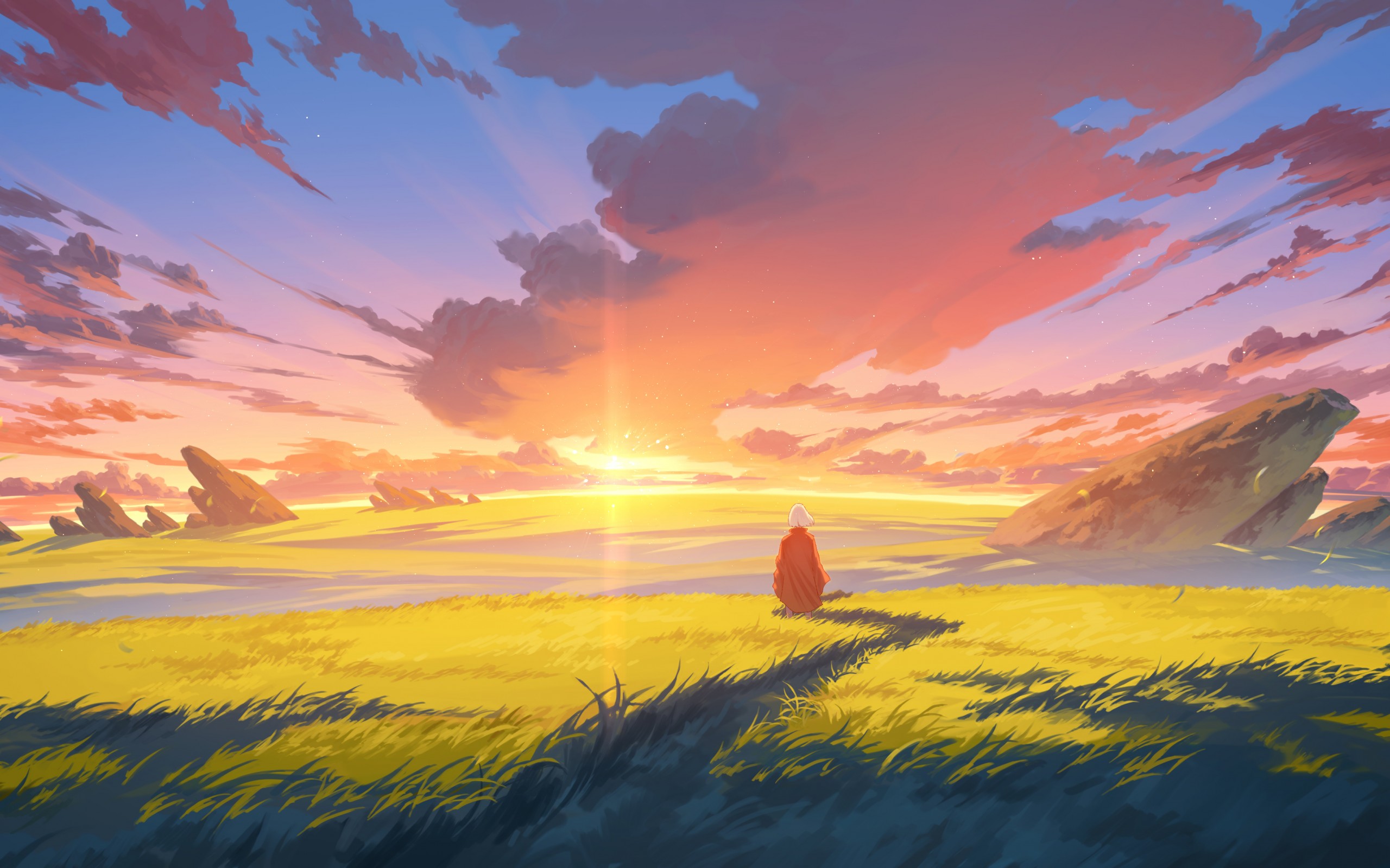 Landscape Field Sunset Sky Digital Art Wallpaper - 2560x1600