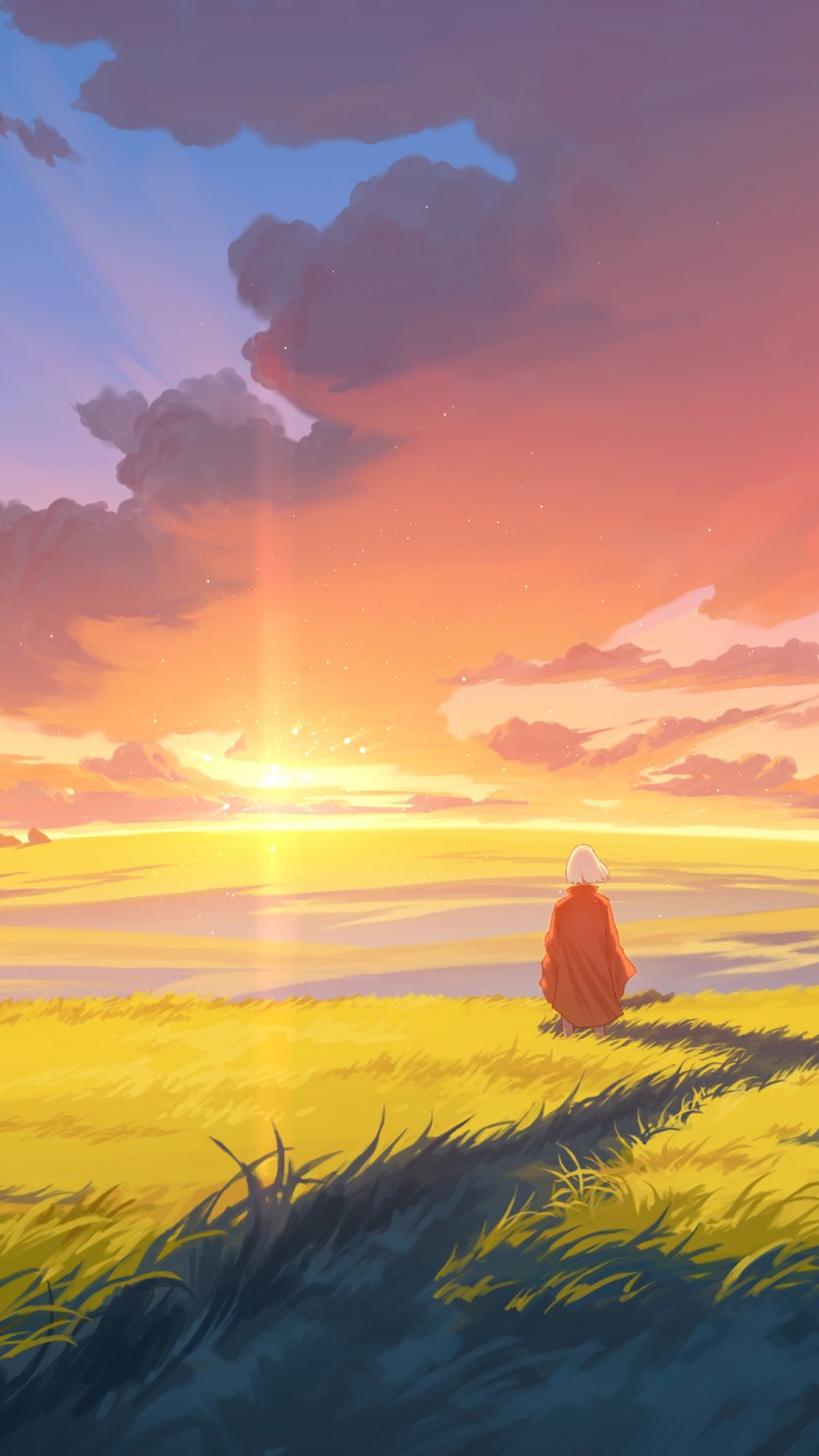 Landscape Field Sunset Sky Digital Art Wallpaper - 750x1334