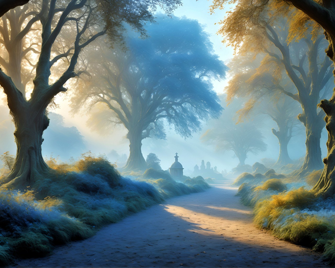 Misty Road Trees Diffusion Ai Art Wallpaper - 1280x1024