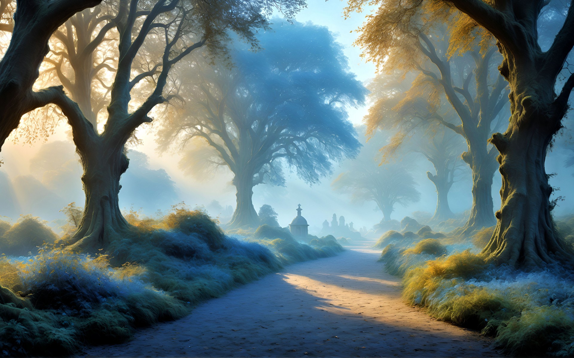 Misty Road Trees Diffusion Ai Art Wallpaper - 1920x1200