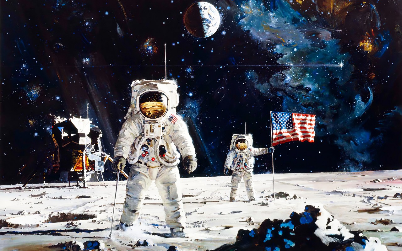 Moon Landing Astronauts USA Flag Nasa Wallpaper - 1280x800