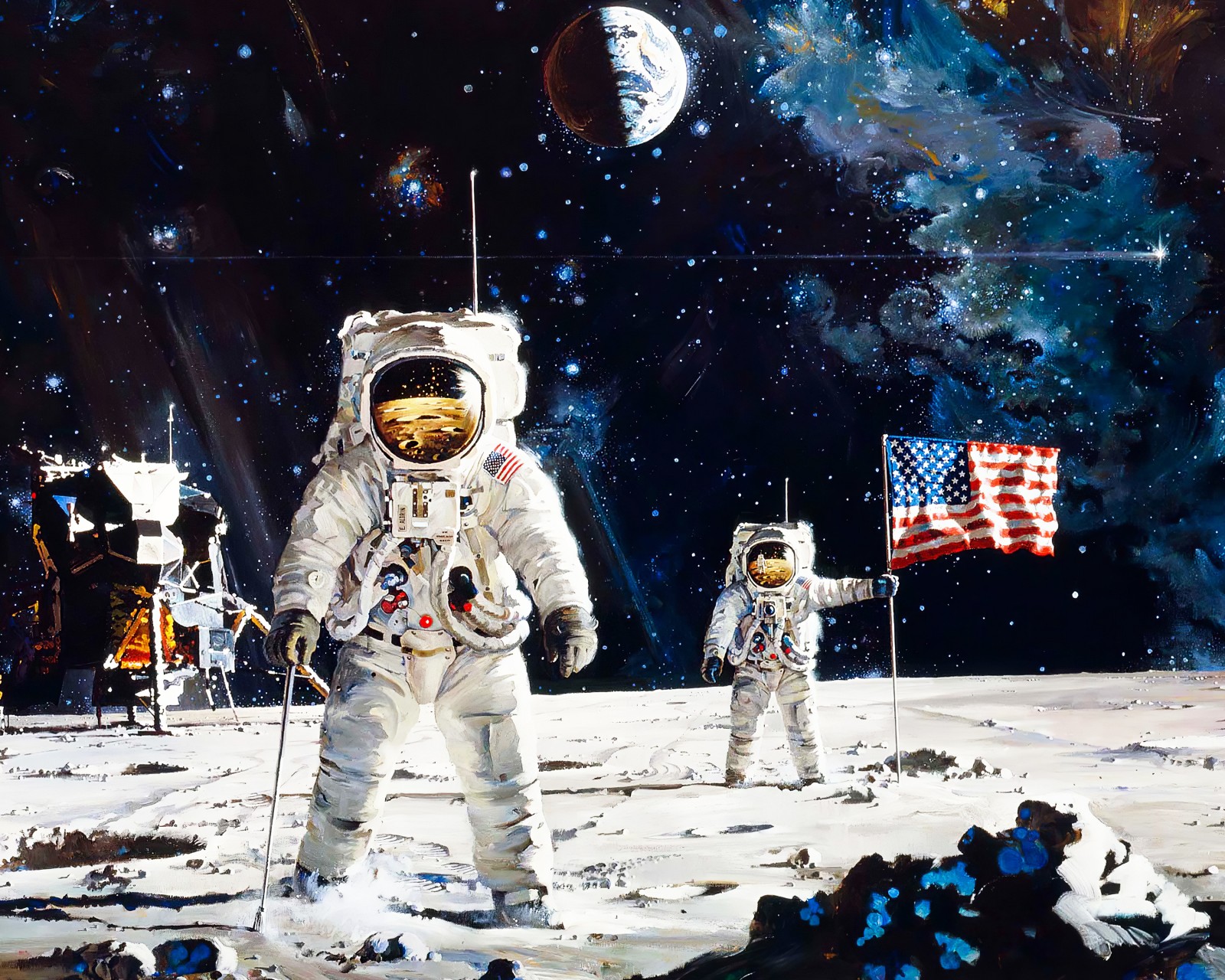 Moon Landing Astronauts USA Flag Nasa Wallpaper - 1600x1280