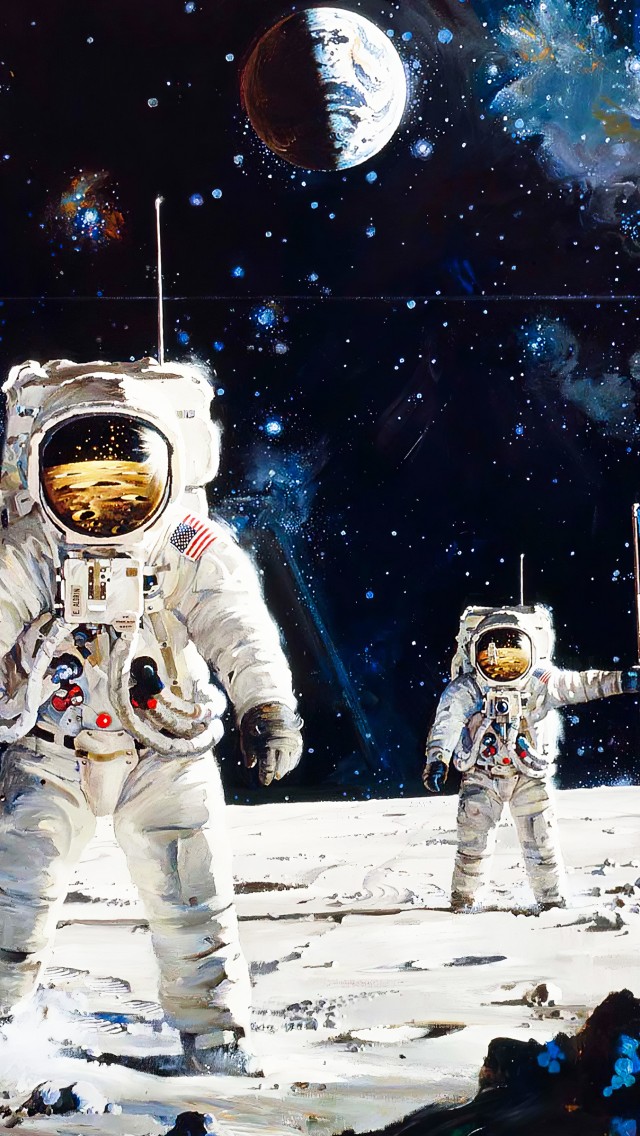 Moon Landing Astronauts USA Flag Nasa Wallpaper - 640x1136
