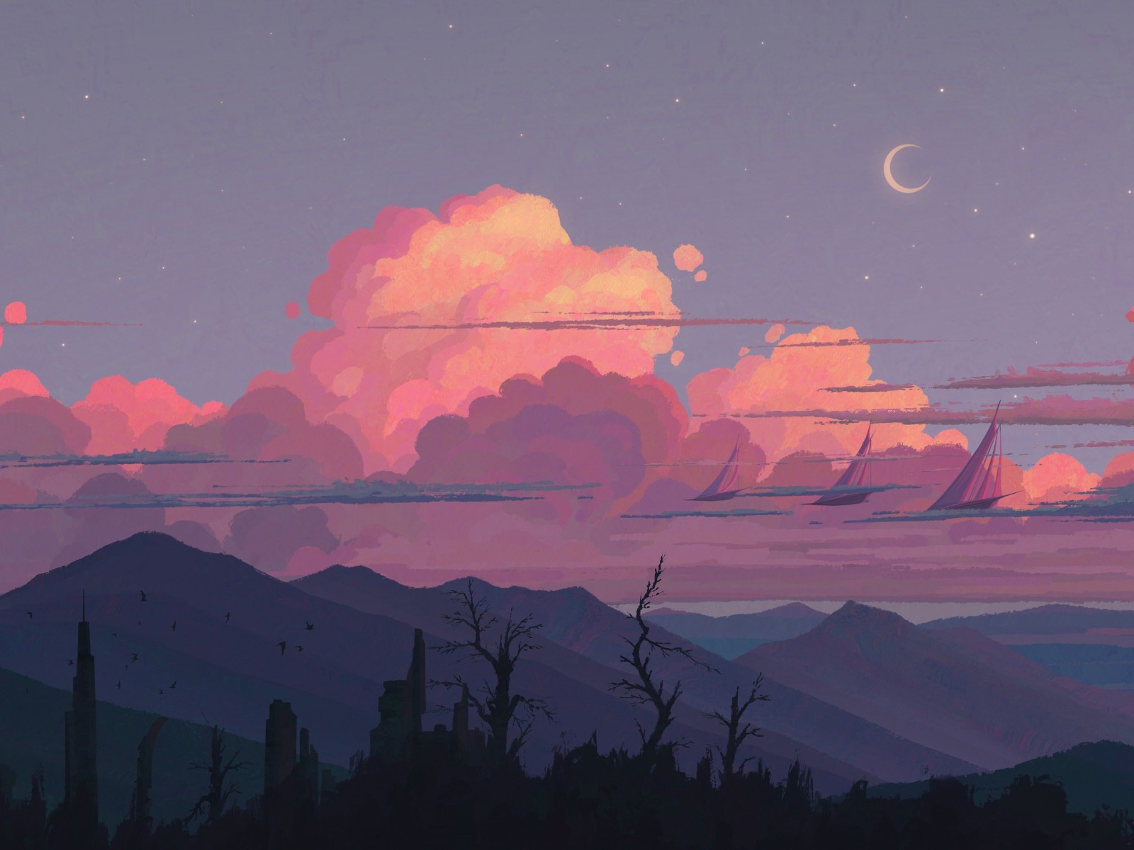 Mountains Clouds Scenery Fantasy Art Wallpaper - 1600x1200