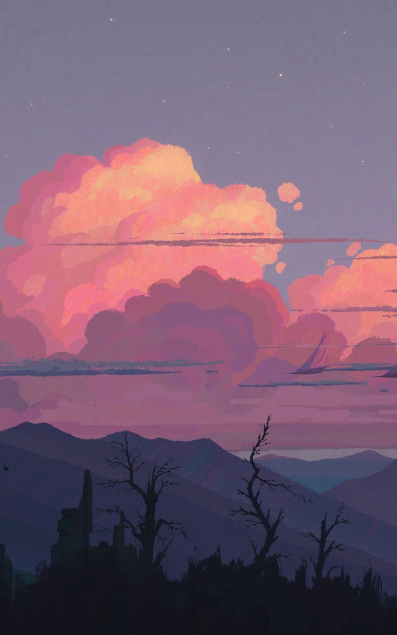 Mountains Clouds Scenery Fantasy Art Wallpaper - 800x1280