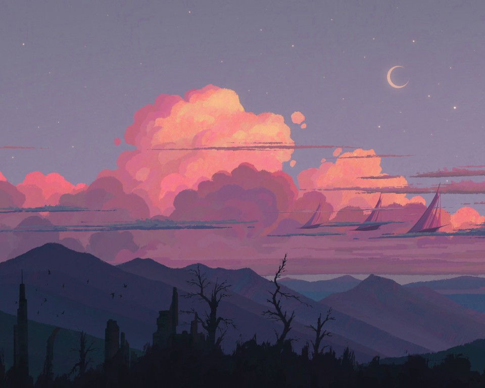Mountains Clouds Scenery Fantasy Art Wallpaper - 960x768