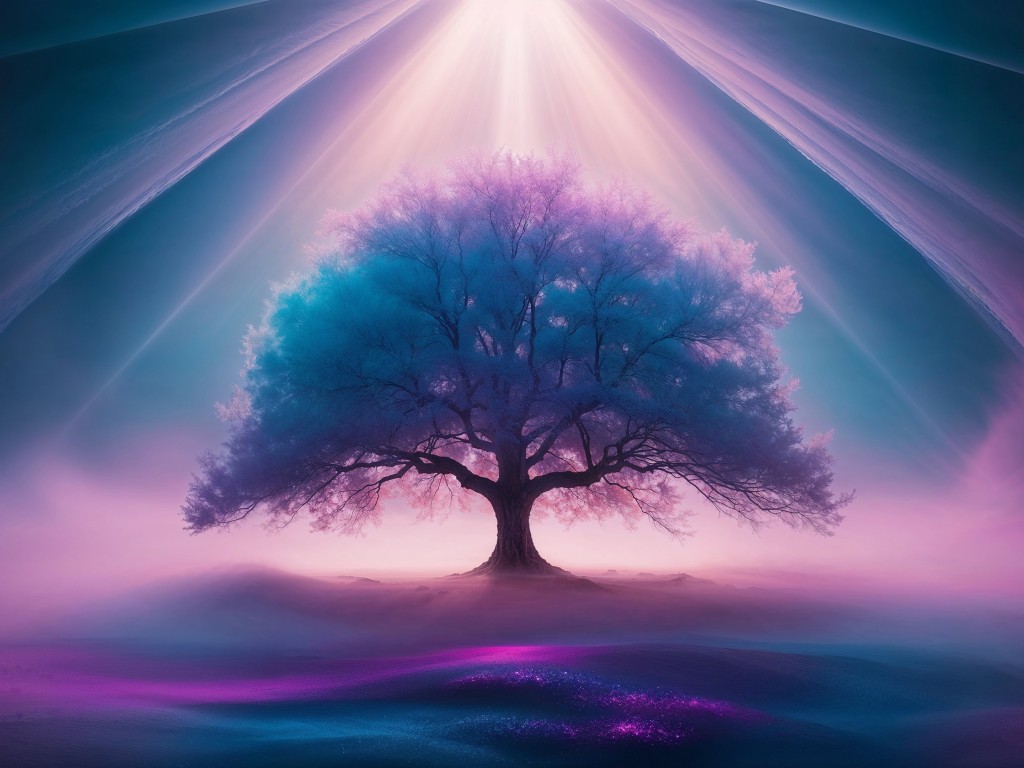 Mystery Tree Fog Ai Art Wallpaper - 1024x768