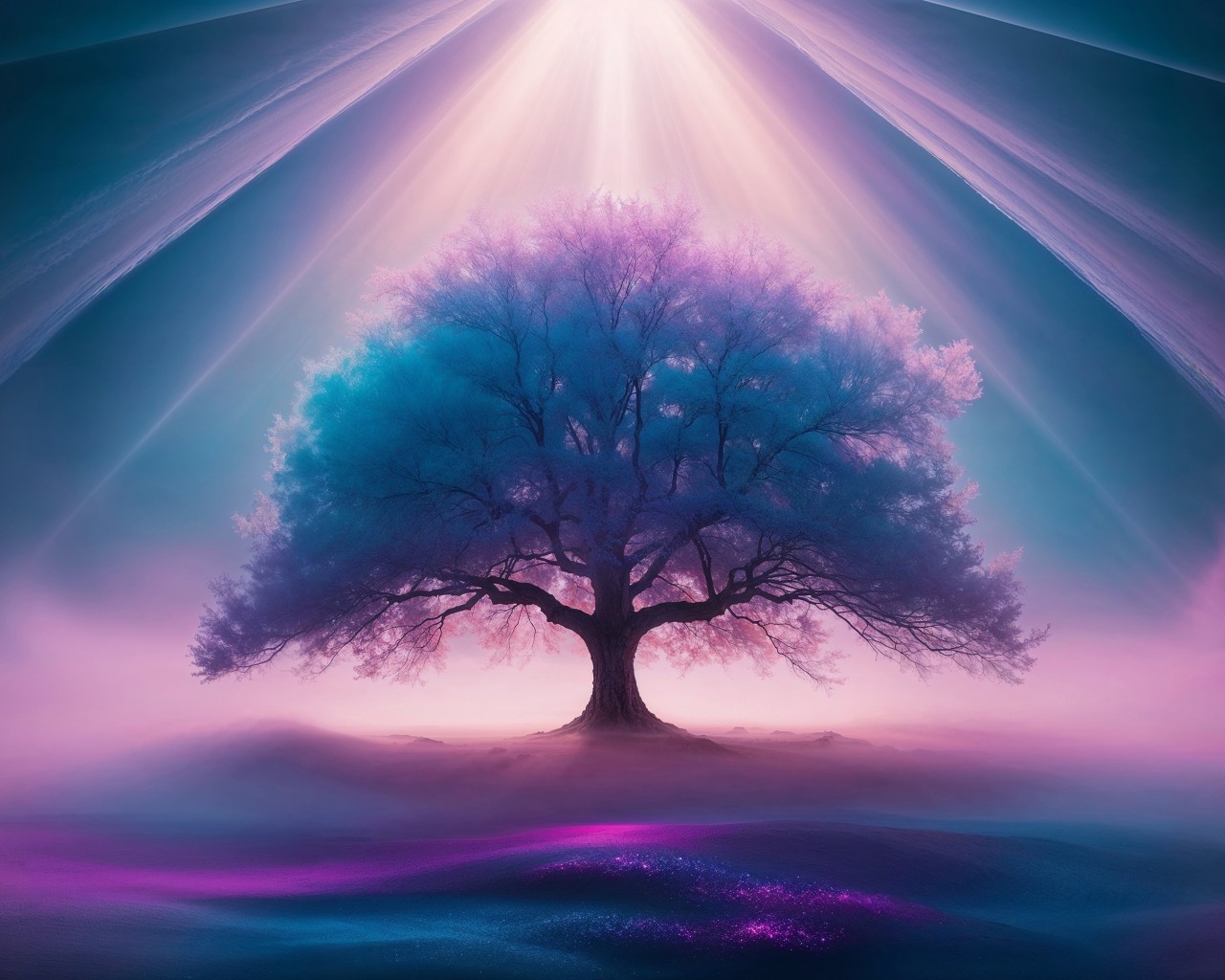 Mystery Tree Fog Ai Art Wallpaper - 1280x1024