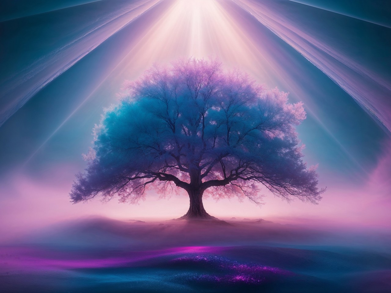 Mystery Tree Fog Ai Art Wallpaper - 1280x960