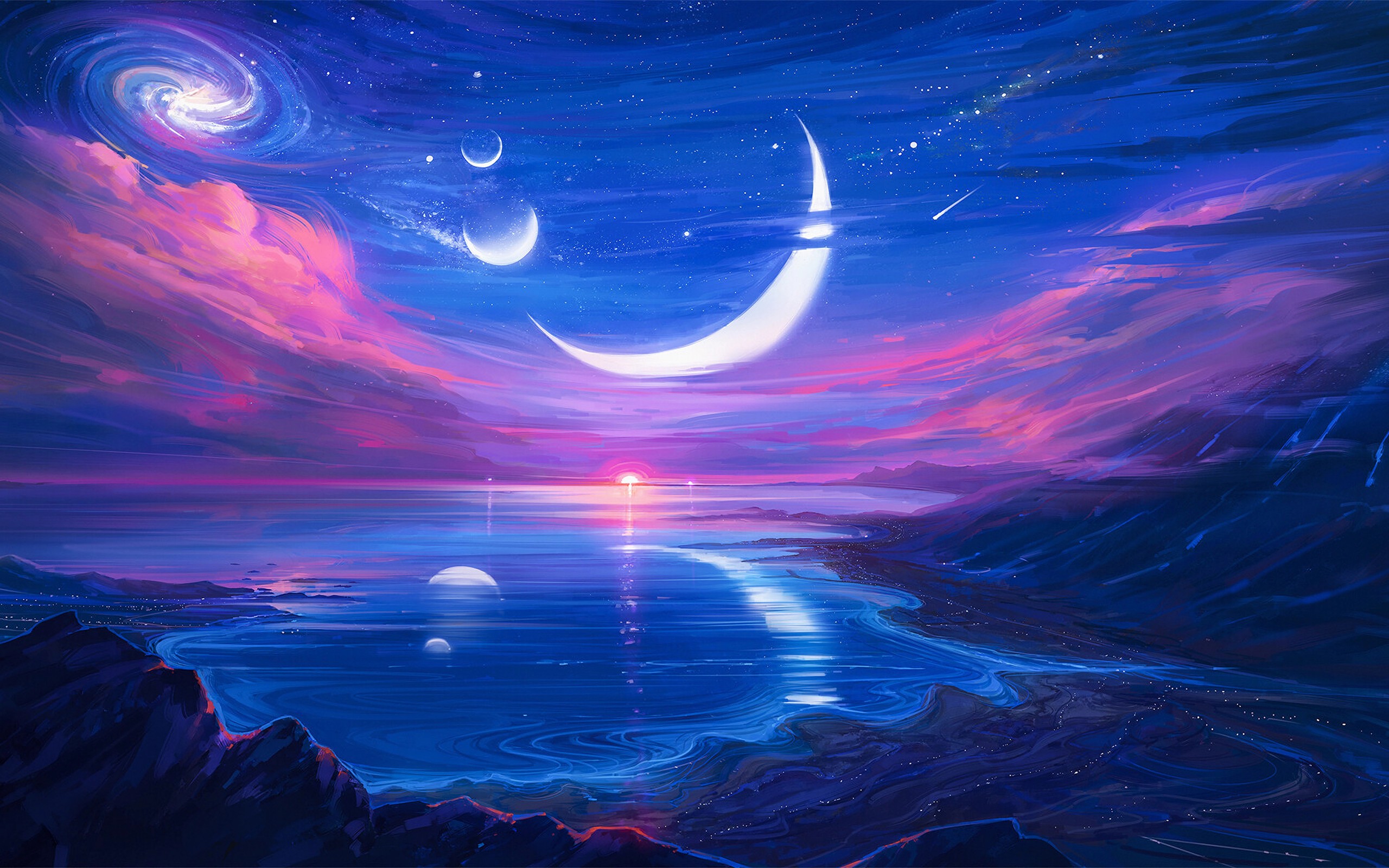 Mystical Moon Blue Sky Comet Sea Art Wallpaper - 2560x1600