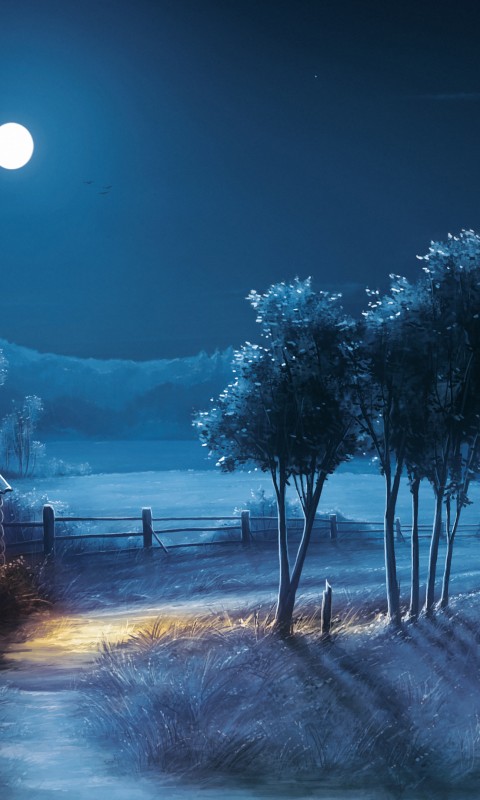 Nature Blue Night House Moon Wallpaper - 480x800