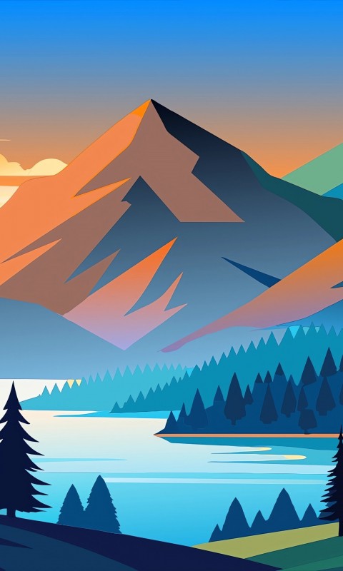 Nature Minimalism Forest Mountains Art Wallpaper - 480x800