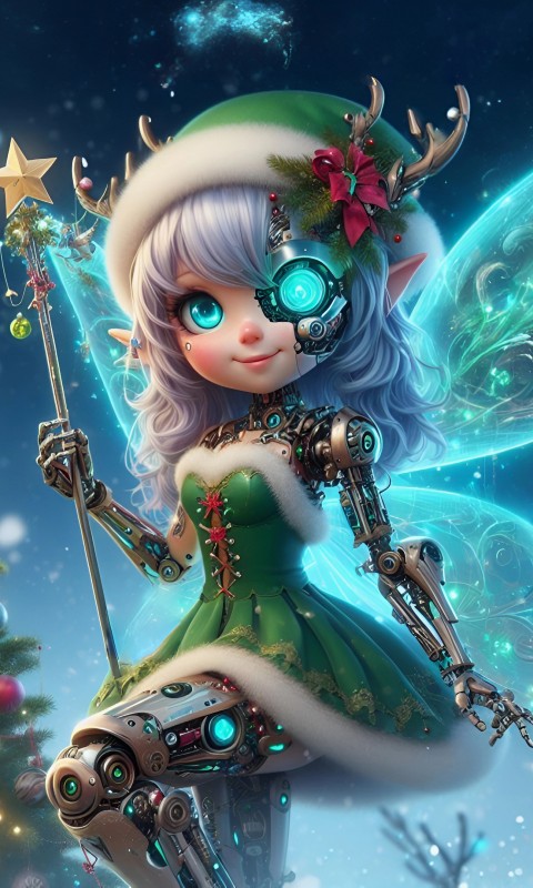 New Year Cyber Fairy Ai Art Wallpaper - 480x800