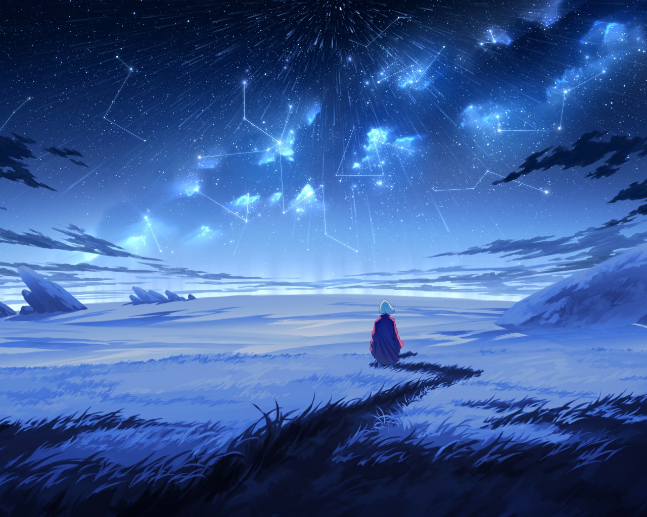 Nightscape Landscape Starred Sky Art Wallpaper - 1280x1024