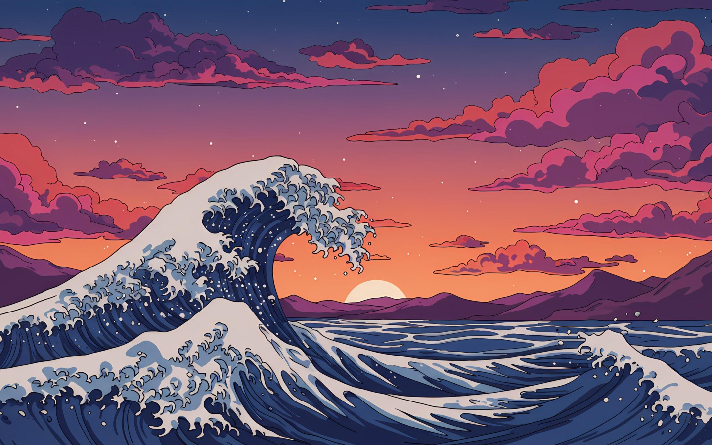 Ocean Wave Sunset Clouds Art Wallpaper - 1440x900