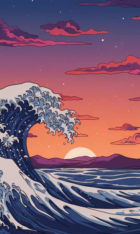 Ocean Wave Sunset Clouds Art Wallpaper - 480x800