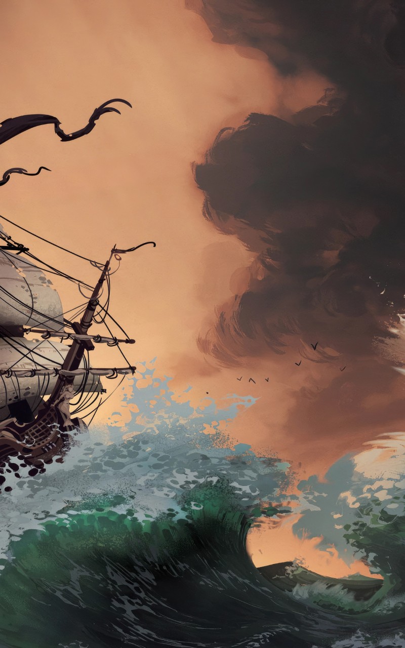 Ocean Waves Pirate Ship Painting Wallpaper - 800x1280