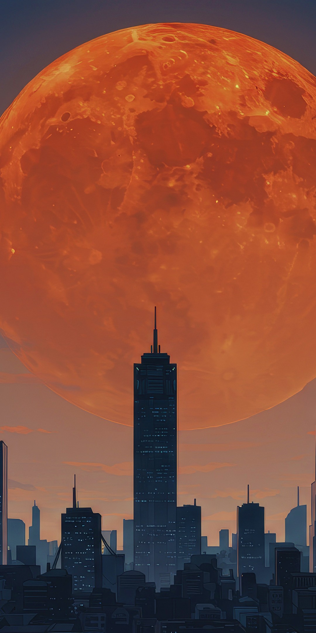 Orange Moon City Skyline Skyscrapers Wallpaper - 1080x2160