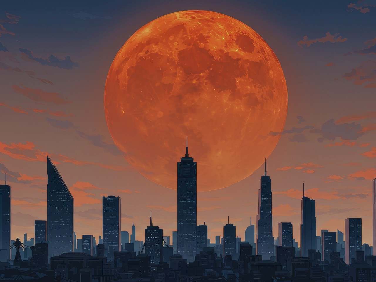Orange Moon City Skyline Skyscrapers Wallpaper - 1280x960