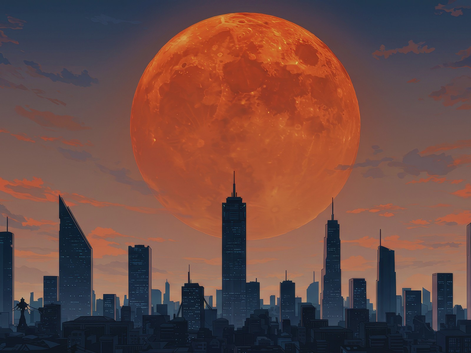 Orange Moon City Skyline Skyscrapers Wallpaper - 1600x1200