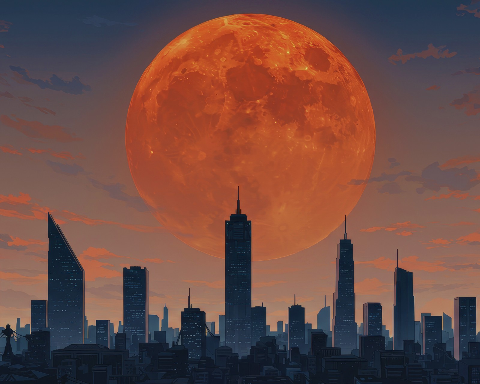 Orange Moon City Skyline Skyscrapers Wallpaper - 1600x1280
