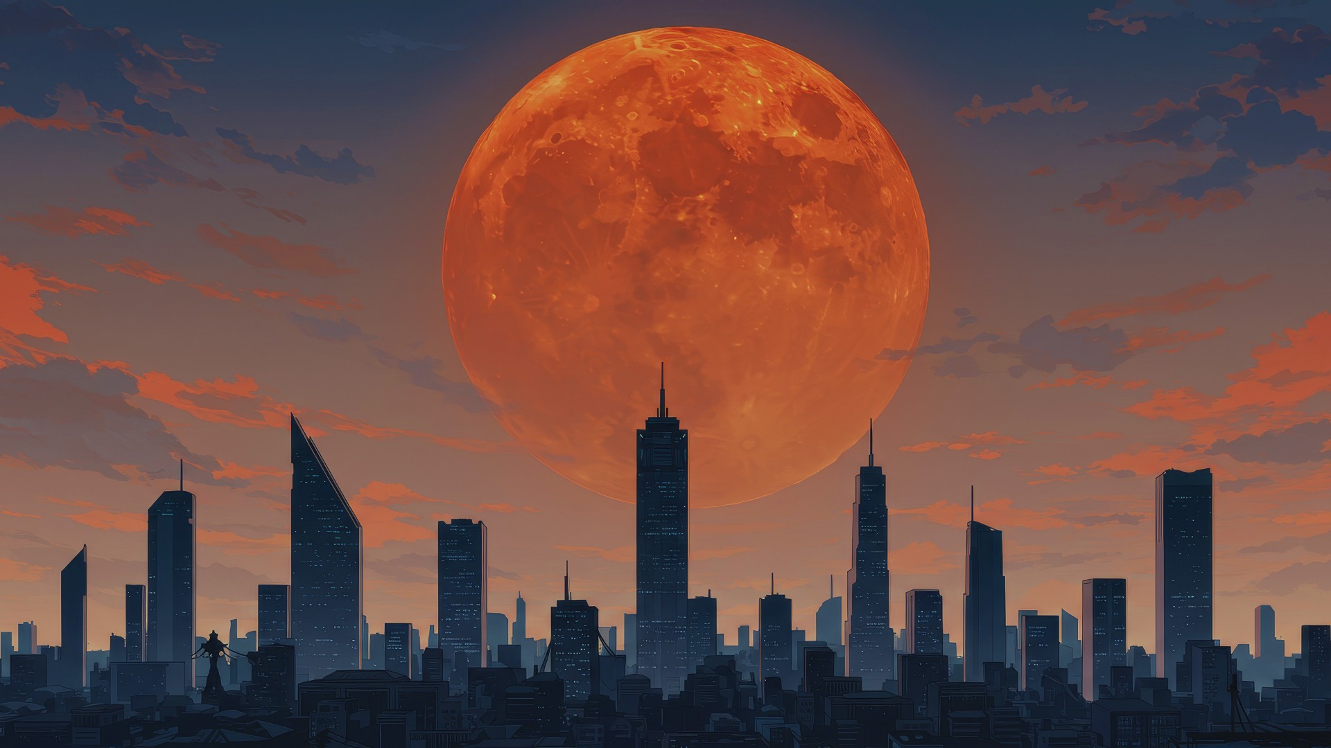 Orange Moon City Skyline Skyscrapers Wallpaper - 1920x1080