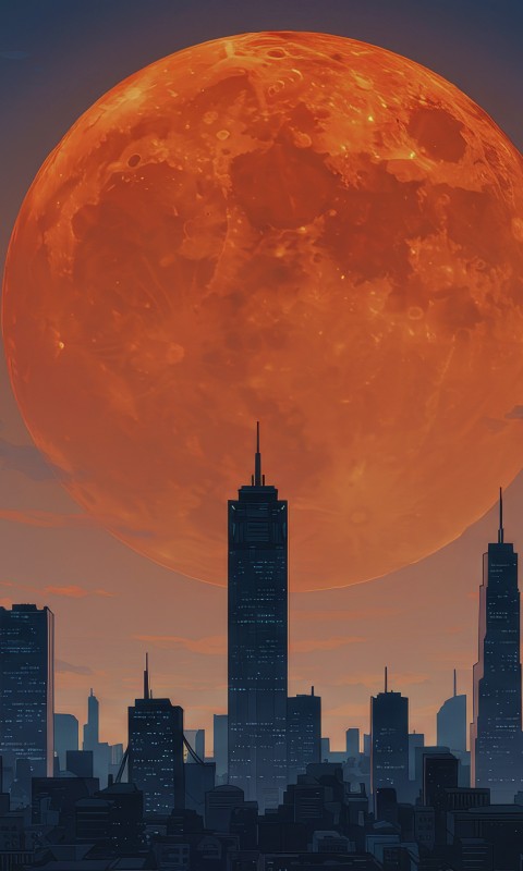 Orange Moon City Skyline Skyscrapers Wallpaper - 480x800