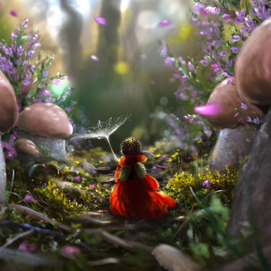 Poppy Fairy Flowers Mushrooms Wallpaper - 1024x1024