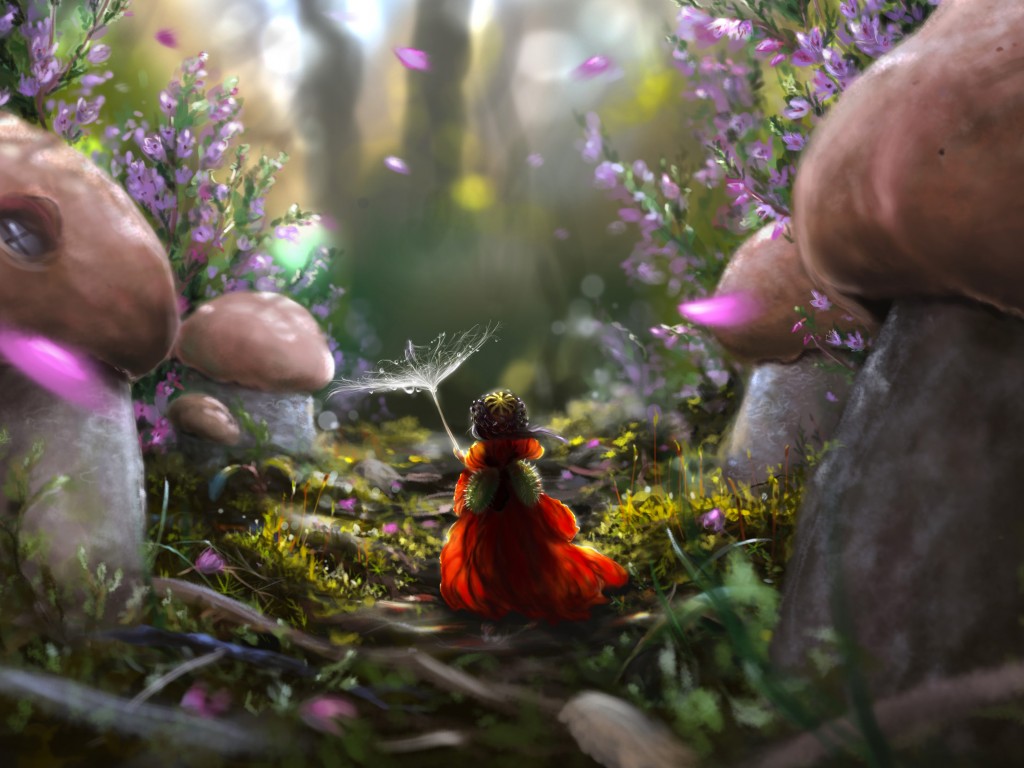 Poppy Fairy Flowers Mushrooms Wallpaper - 1024x768