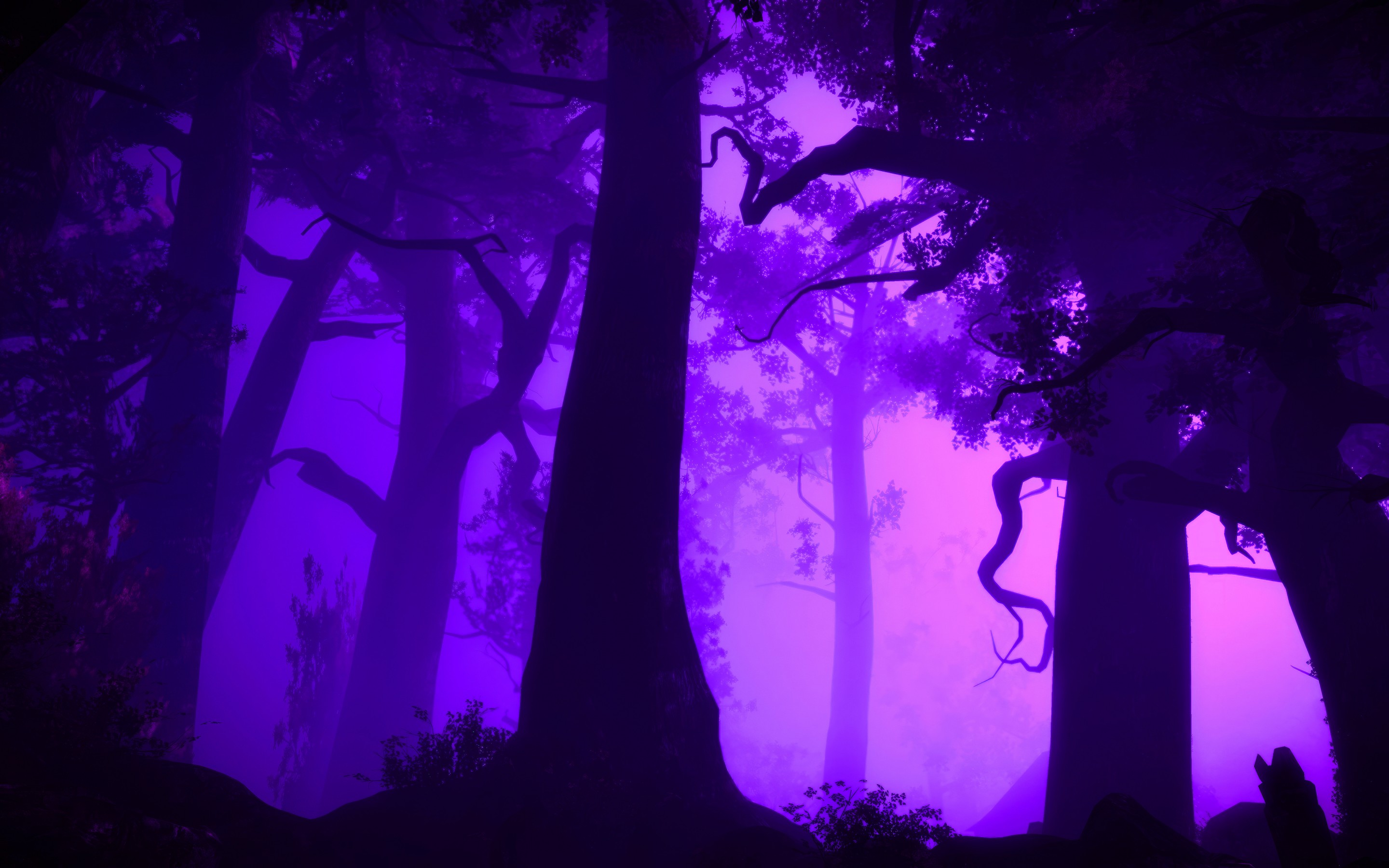 Purple Dark Trees Digital Art Wallpaper - 2880x1800