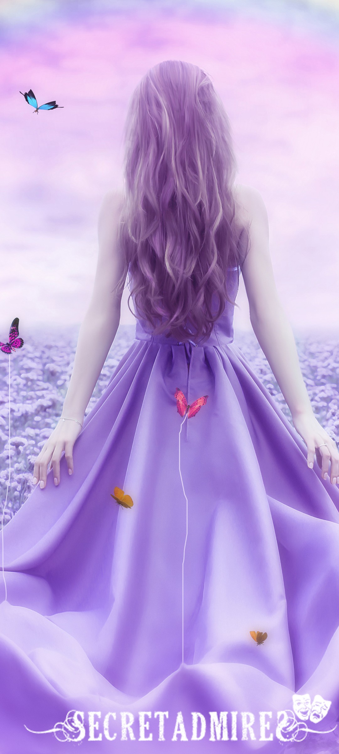 Purple Flowers Rainbow Bbutterfly Girl Wallpaper - 1080x2400