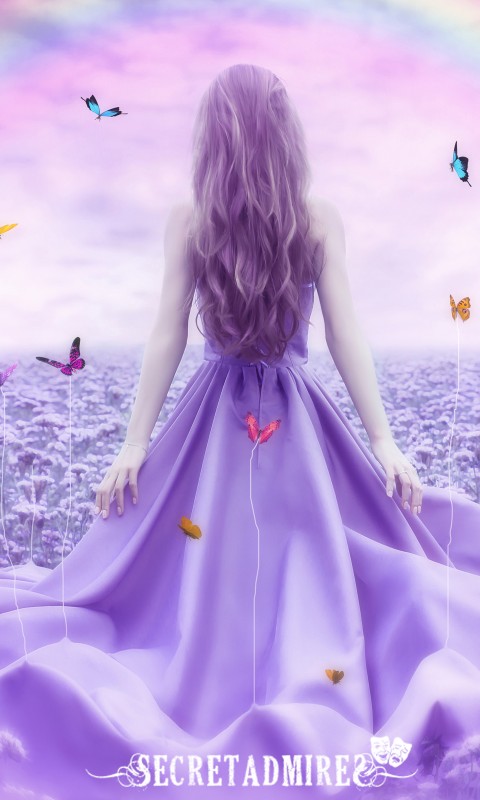 Purple Flowers Rainbow Bbutterfly Girl Wallpaper - 480x800
