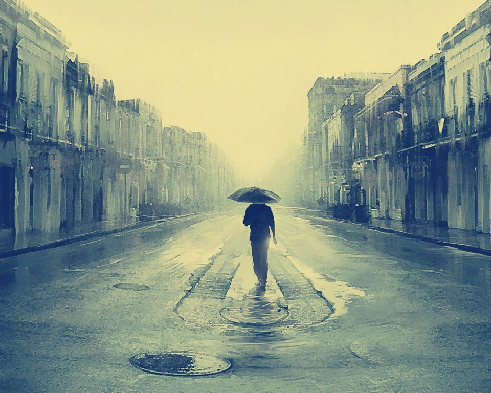 Sad Man Umbrella Rainy Street Wallpaper - 960x768