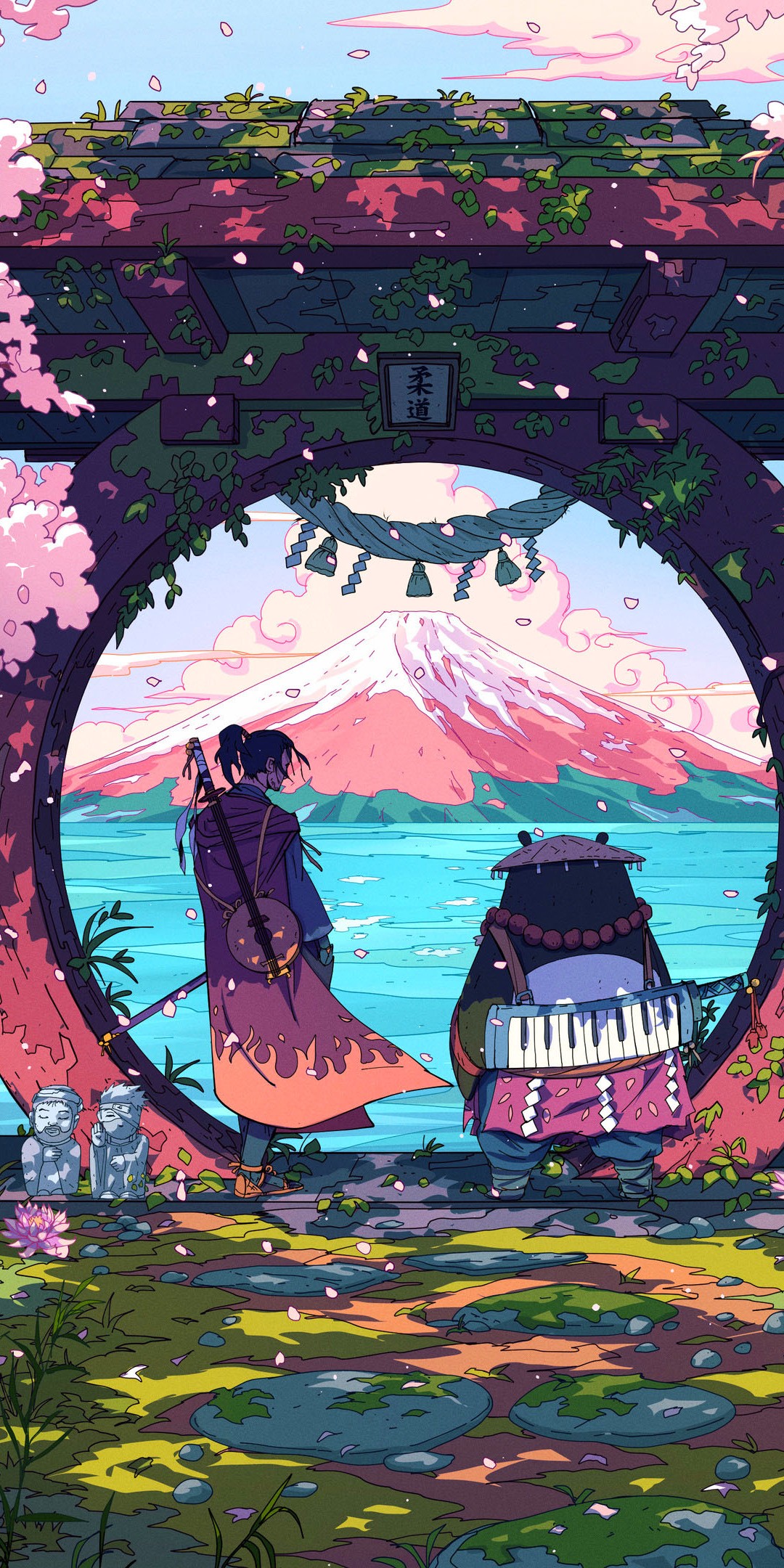 Samurai And Panda Digital Art Wallpaper - 1080x2160