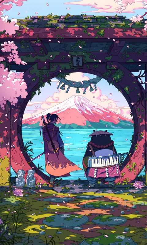 Samurai And Panda Digital Art Wallpaper - 480x800