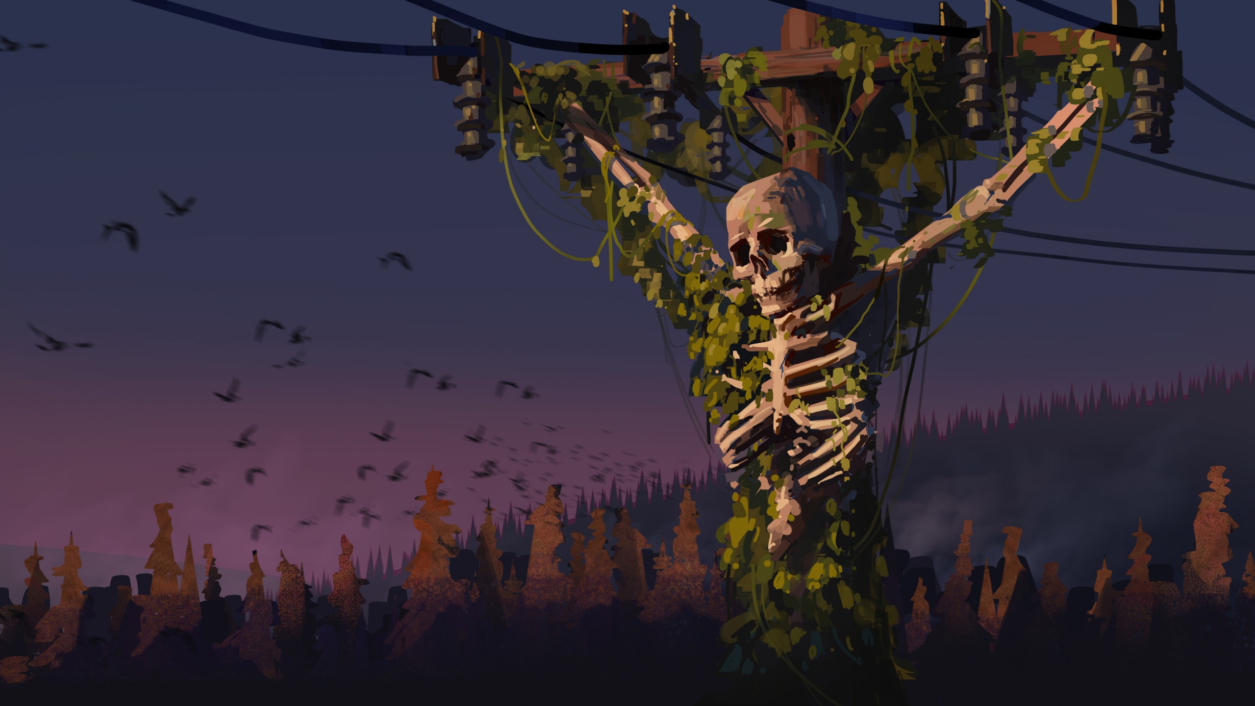 Skeleton Electric Pole Digital Art Wallpaper - 2560x1440