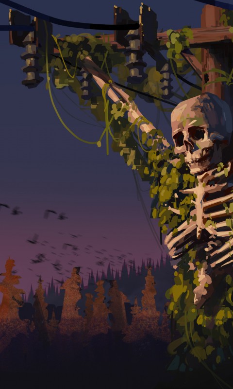 Skeleton Electric Pole Digital Art Wallpaper - 480x800
