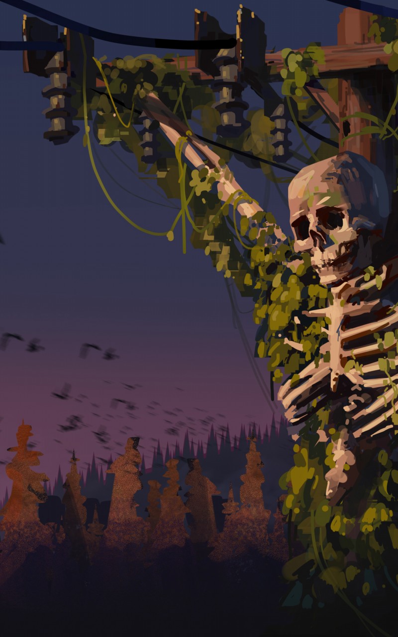 Skeleton Electric Pole Digital Art Wallpaper - 800x1280